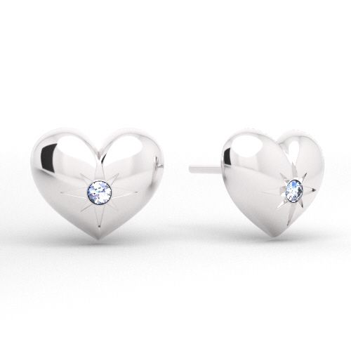 Sztyfty / kolczyki serca z Różą Wiatrów, z kryształkami - kamieniami